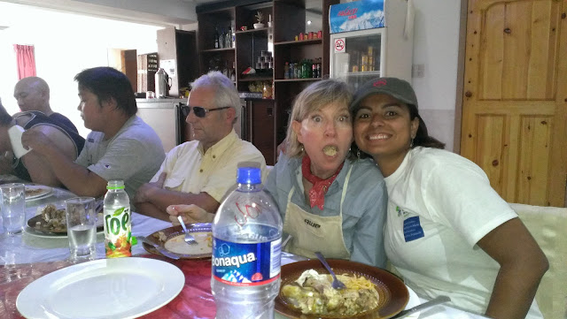 We drove into the town near our construction site. Lunch was at a local restaurant and consisted of chicken legs, rice and a salad that was some kinds of cole slaw.