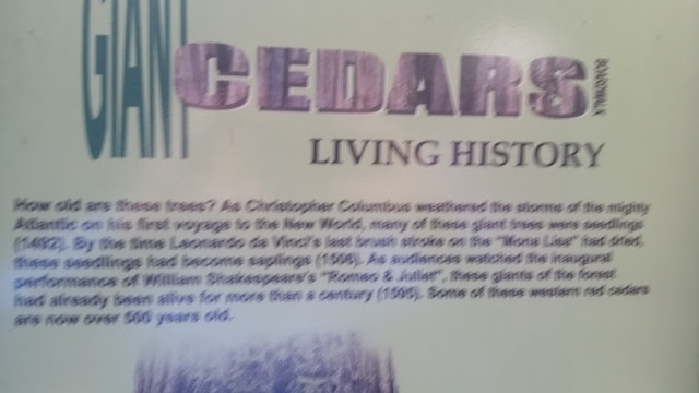 As we drove through Yoho National Park, we stopped in Field, B.C., at the Yoho Trading Post for coffee (well, I had coffee, but Patty did not). The beautiful drive continued, and we passed through Canada's Glacier National Park and into Revelstoke National Park. Our first stop was the Giant Cedars Boardwalk in an old growth forest with trees as old as 500 years.