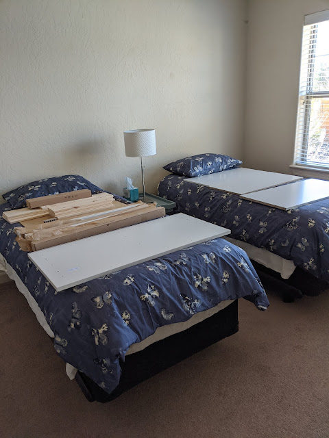 All of the interior hinged doors have doorstops on them so that the door handles do not bang into the walls. That means we needed to replace these hinge mounted door stops on 20 doors - twelve closet doors (six closets have double doors) and eight room doors. I had replaced six previously and today we did eight more (and later I placed an order for six more from Amazon).